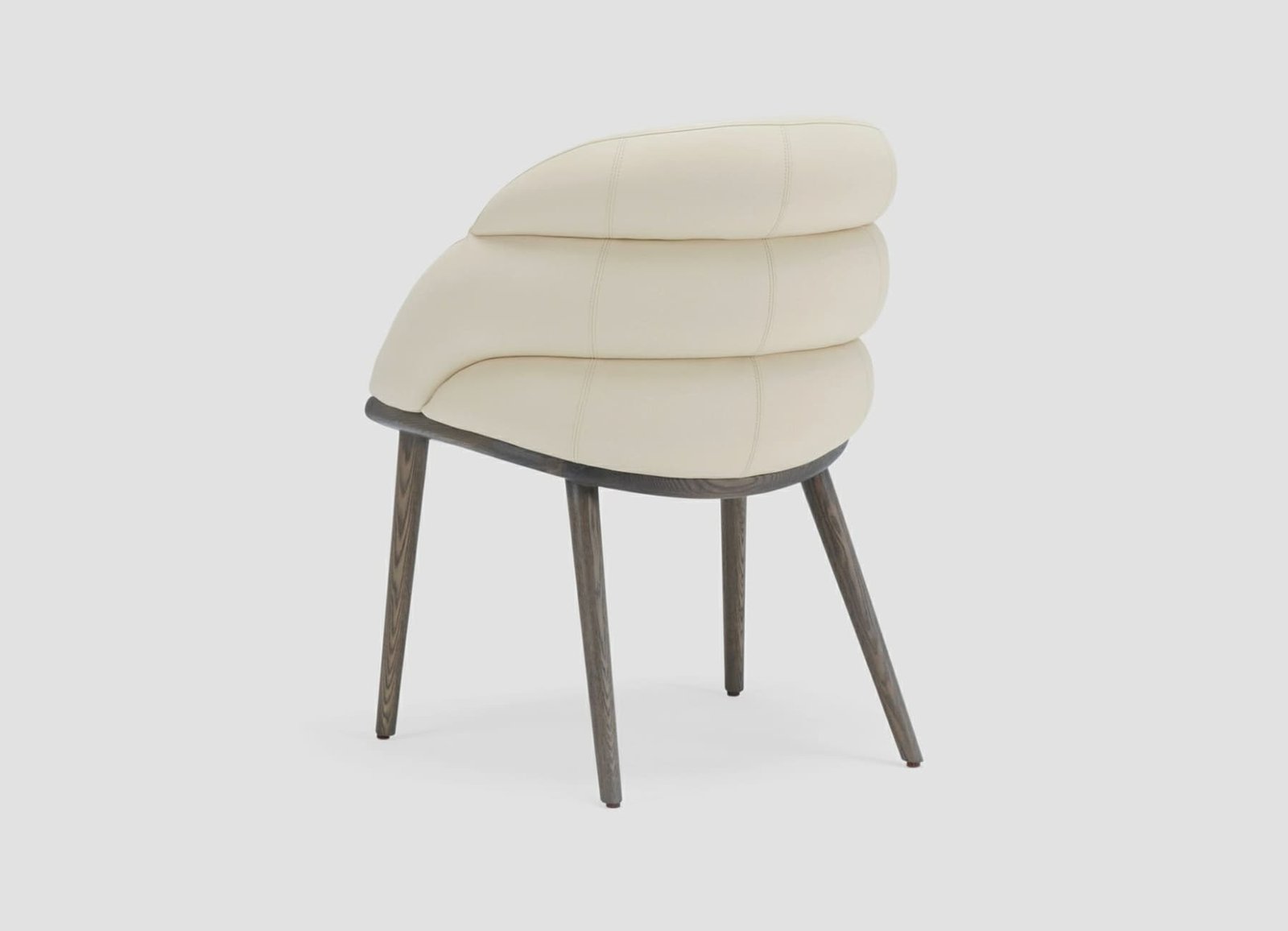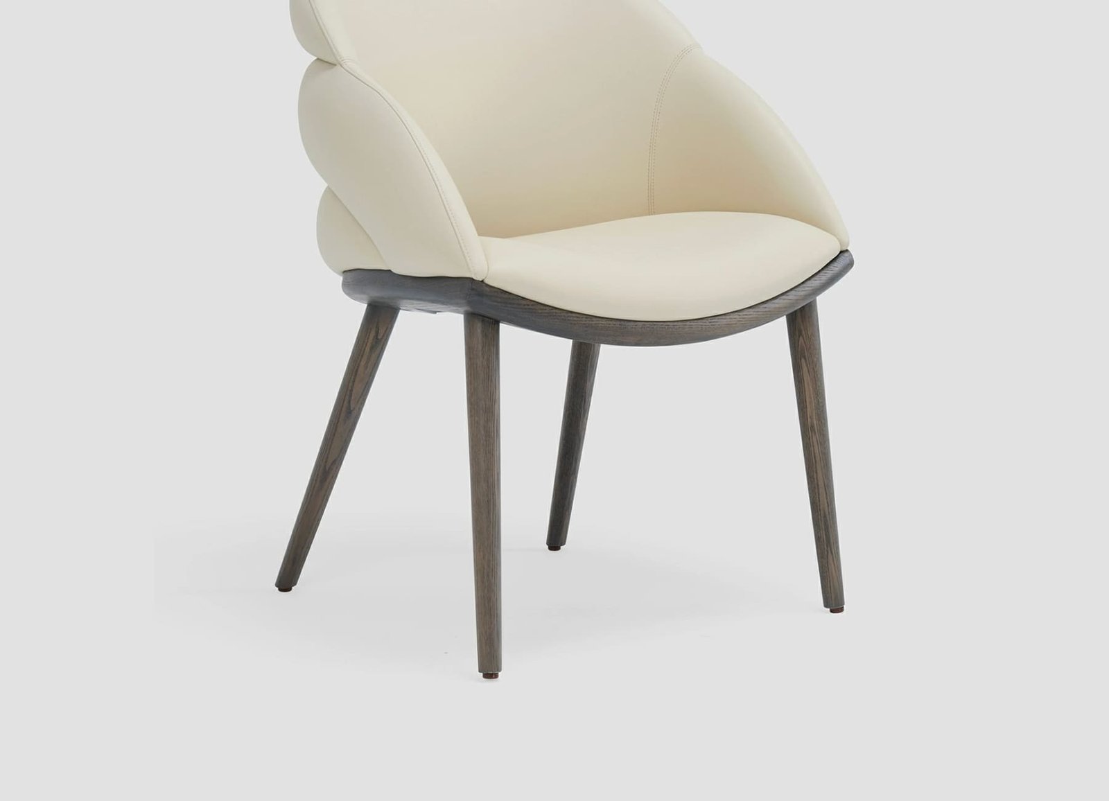 The Nuvia Dining Chair blends modern elegance with exceptional comfort. Its sculpted curved back and layered cushioning create a soft, inviting silhouette, while the solid ash wood legs add natural warmth and durability. Designed in Toronto and shipped across Canada and the United States, it’s the perfect upscale addition to contemporary dining spaces.