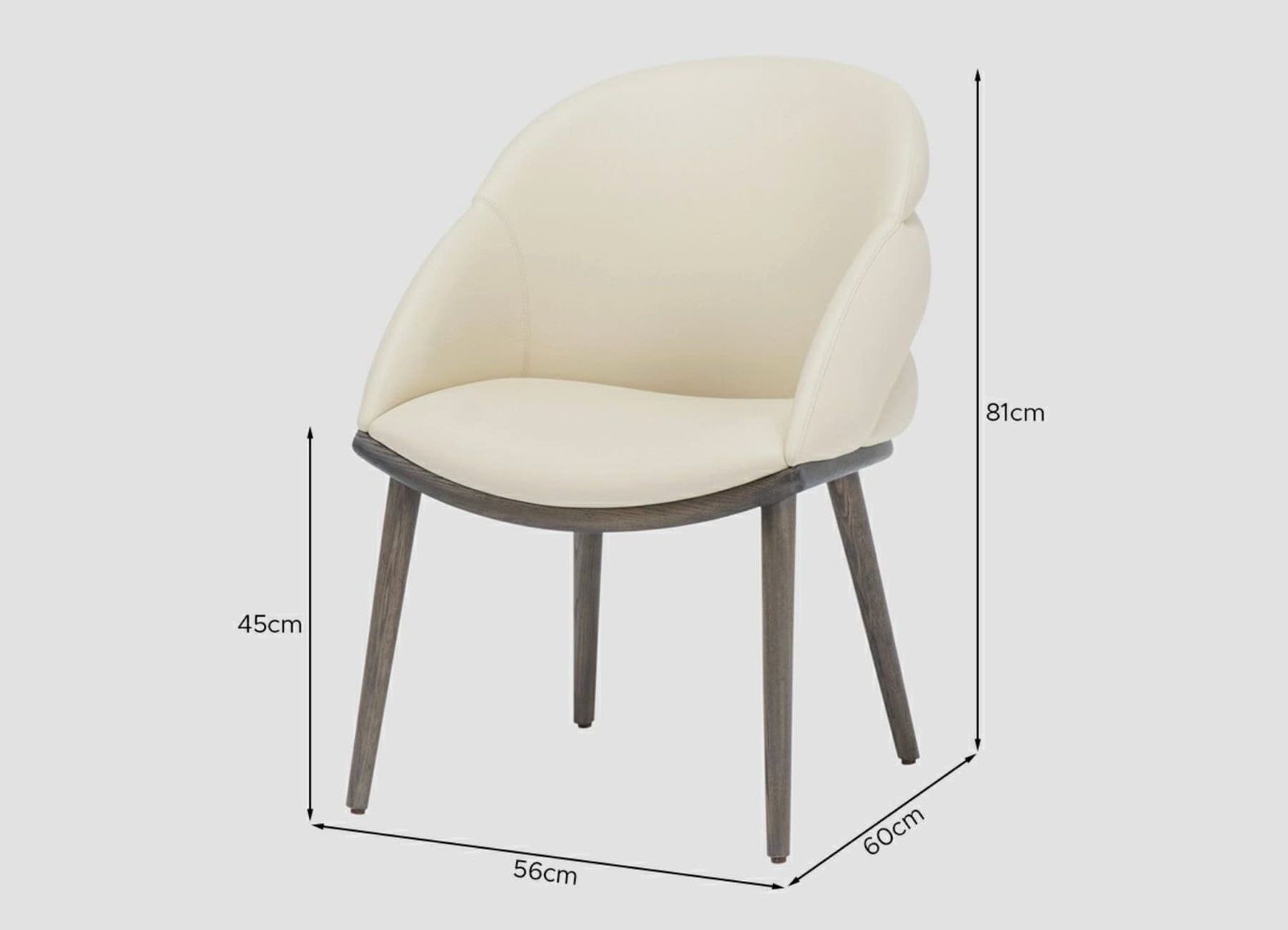 A modern and luxurious dining chair featuring a curved padded back, layered cushioning, and a solid ash wood base. Upholstered in easy-clean cream microfiber fabric for everyday comfort and durability. Ships from Toronto across Canada & the U.S.