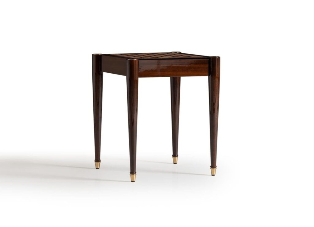 Enhance your home with the Tivano Side Table, featuring a contemporary design with clean lines, gold metal legs, a black marble top, and a wooden lower tier. This luxury side table is perfect for the bedroom or living room, combining elegance and functionality.