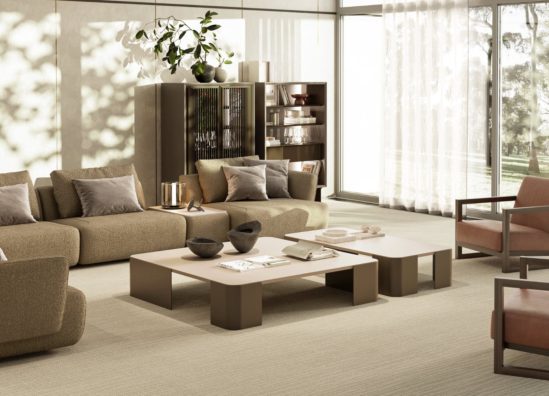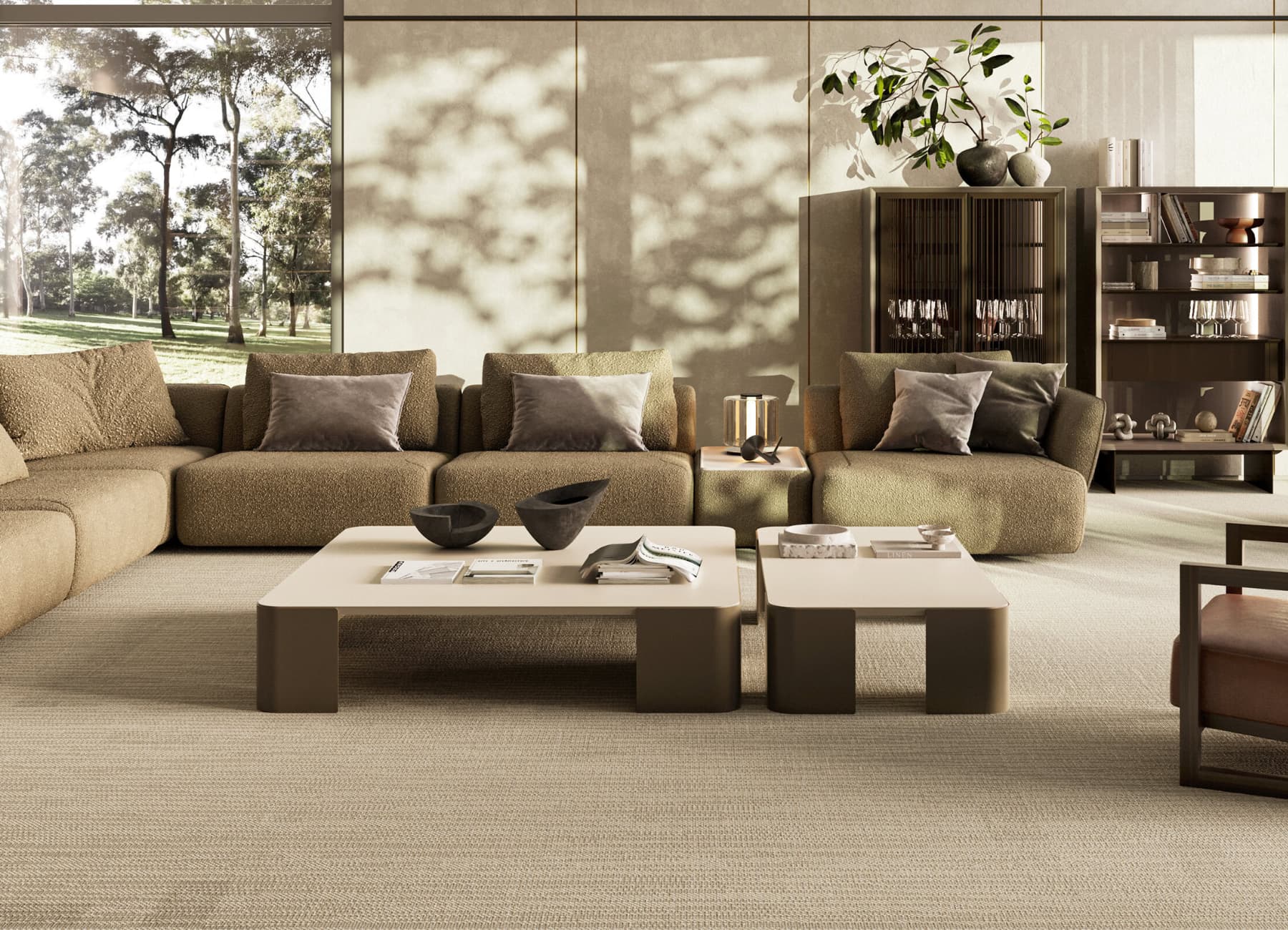 he Bloom Coffee Table is crafted for those who appreciate spacious elegance and modern design. Perfectly suited for larger seating areas, this coffee table set blends form and function effortlessly. Its EMPT oven-painted metal legs offer a refined and durable foundation, while the moonstone lacquered top introduces a soft, fresh tone to your living room.