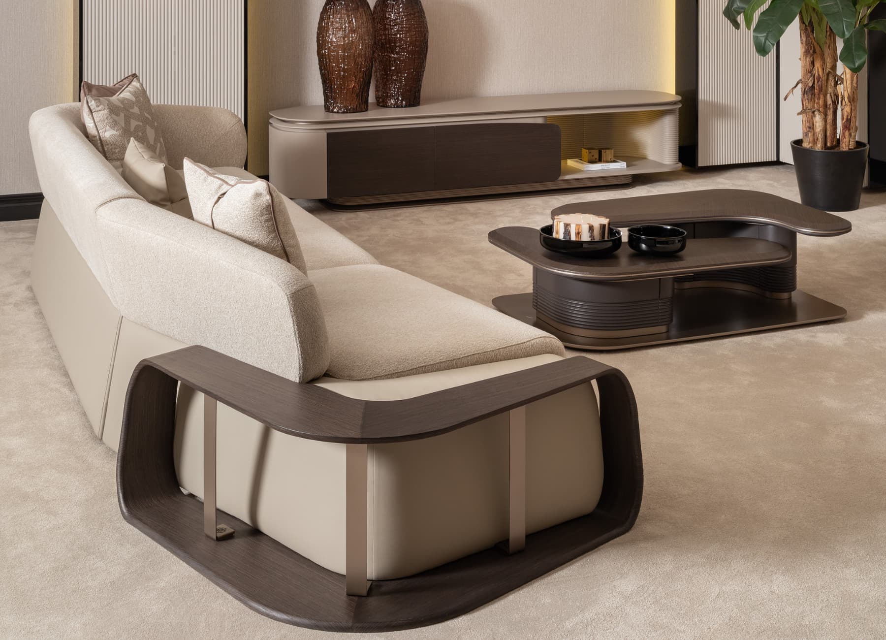Sleek, sculptural, and ultra-comfortable—the Corte Chaise Sofa is designed to make a statement. Its fluid lines, asymmetrical form, and combination of soft upholstery and wood base create a bold architectural presence. The extended chaise lounge offers added relaxation, making it perfect for lounging in style. Crafted from solid materials and premium finishes, this piece is a standout in any luxury interior.
