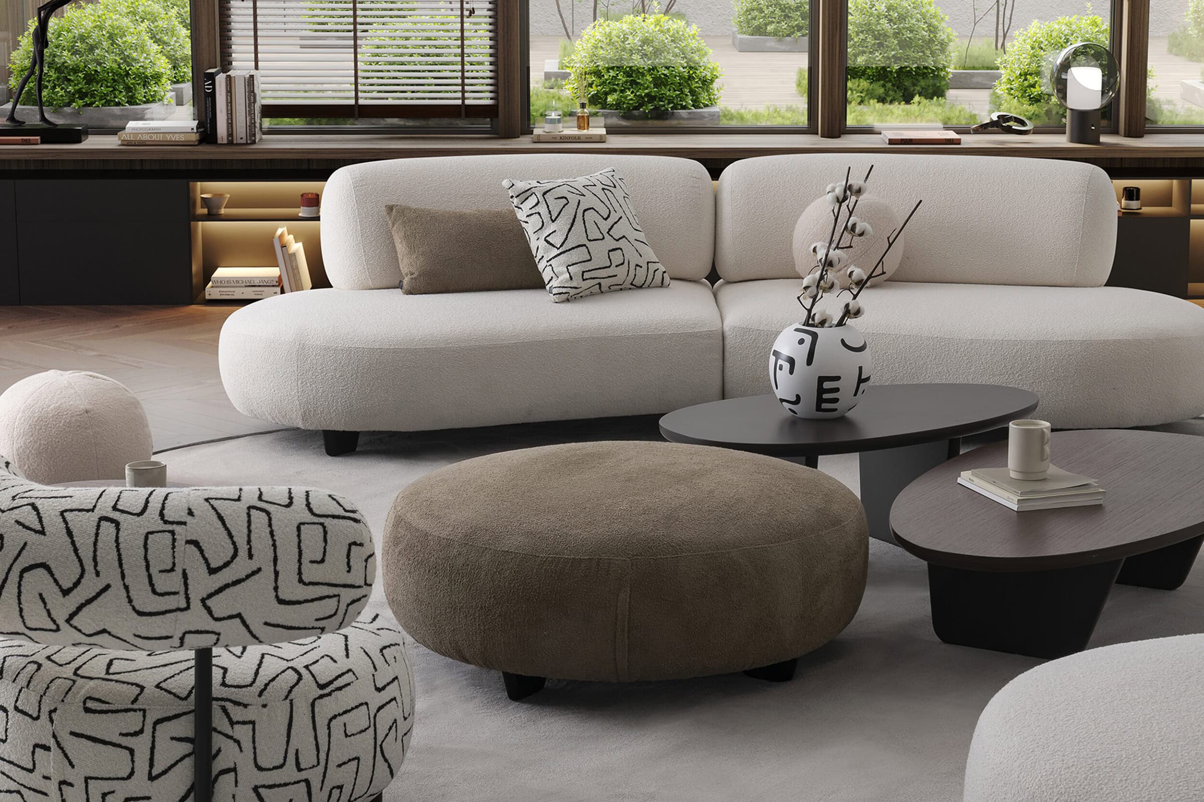 The Bon Bon Ottoman, a large round ottoman from LEOPARD Furniture, embodies contemporary design with its unique beech wood legs and premium polyester fabric upholstery. With a generous 108 cm diameter, it’s perfect for spacious living. Choose from four online colors or explore more options in-store. Elevate your comfort with style.