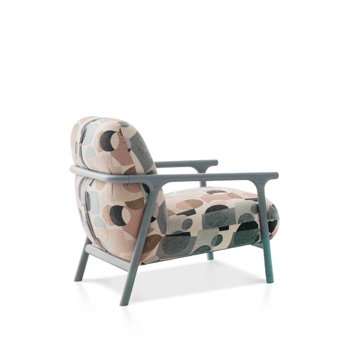 Add a playful touch of luxury to your living space with the Boboli Marshmallow Armchair by LEOPARD Furniture. Featuring a unique and colorful fabric along with fixed wooden legs, this armchair serves as the perfect statement piece for any high-end home.