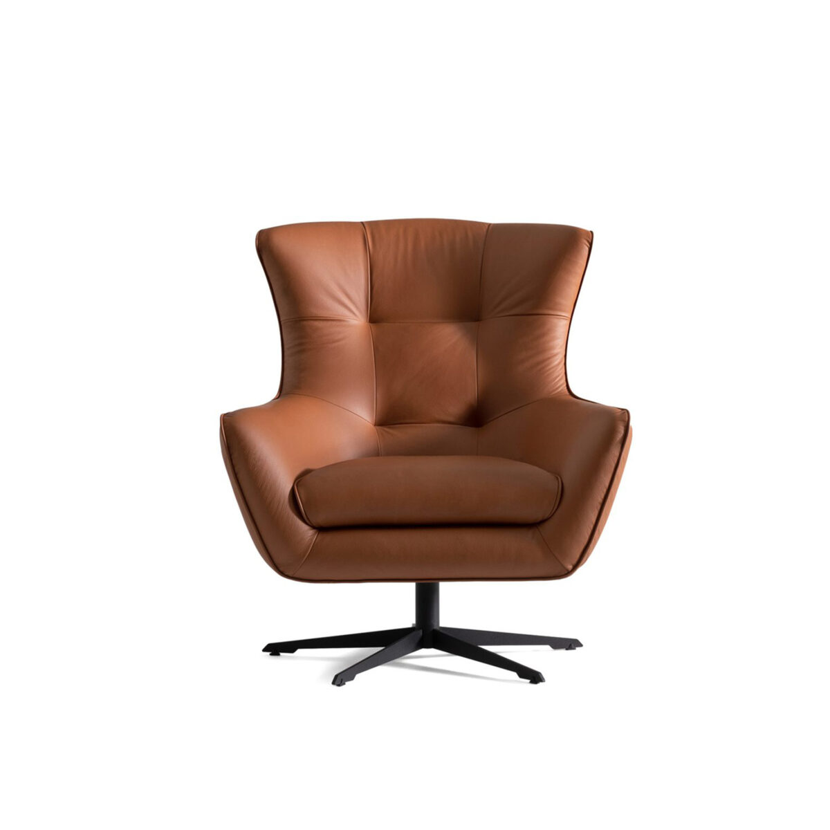 The Maserati Swivel Armchair seamlessly blends timeless elegance and modern functionality. Crafted with high-quality genuine leather and a swivel feature, it redefines luxury and versatility. While online orders offer classic leather colors, in-store and email orders have access to a wider spectrum. The black metal swivel base enhances the wingback design. Experience comfort, style, and adaptability in your living space.