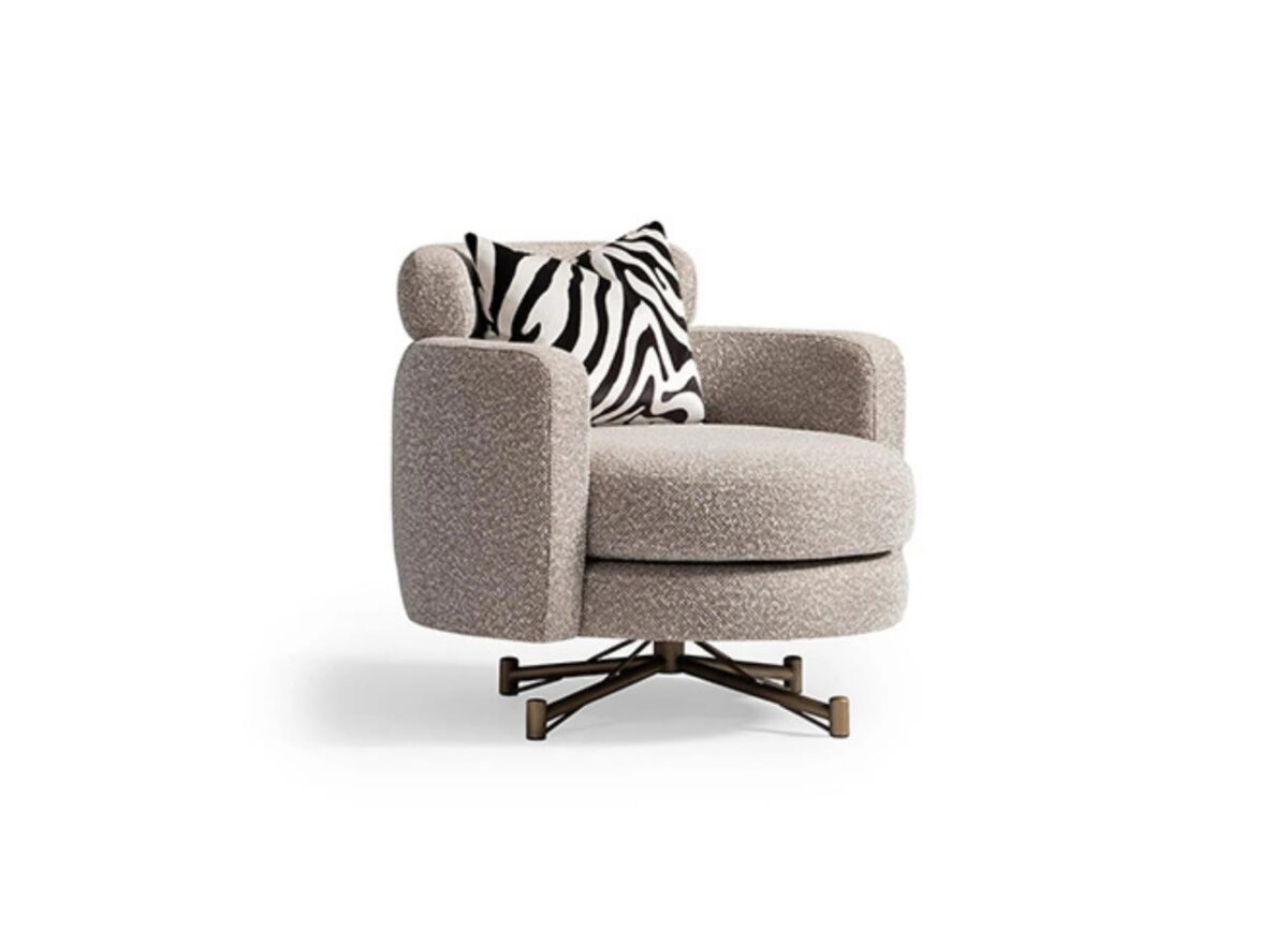 Accented by rounded arms, a supportive backrest, and a zebra-patterned throw pillow for contrast, the Milano armchair adds depth and personality to any living room or study. The rear profile showcases soft contours and artisanal tailoring, ensuring beauty from every angle.