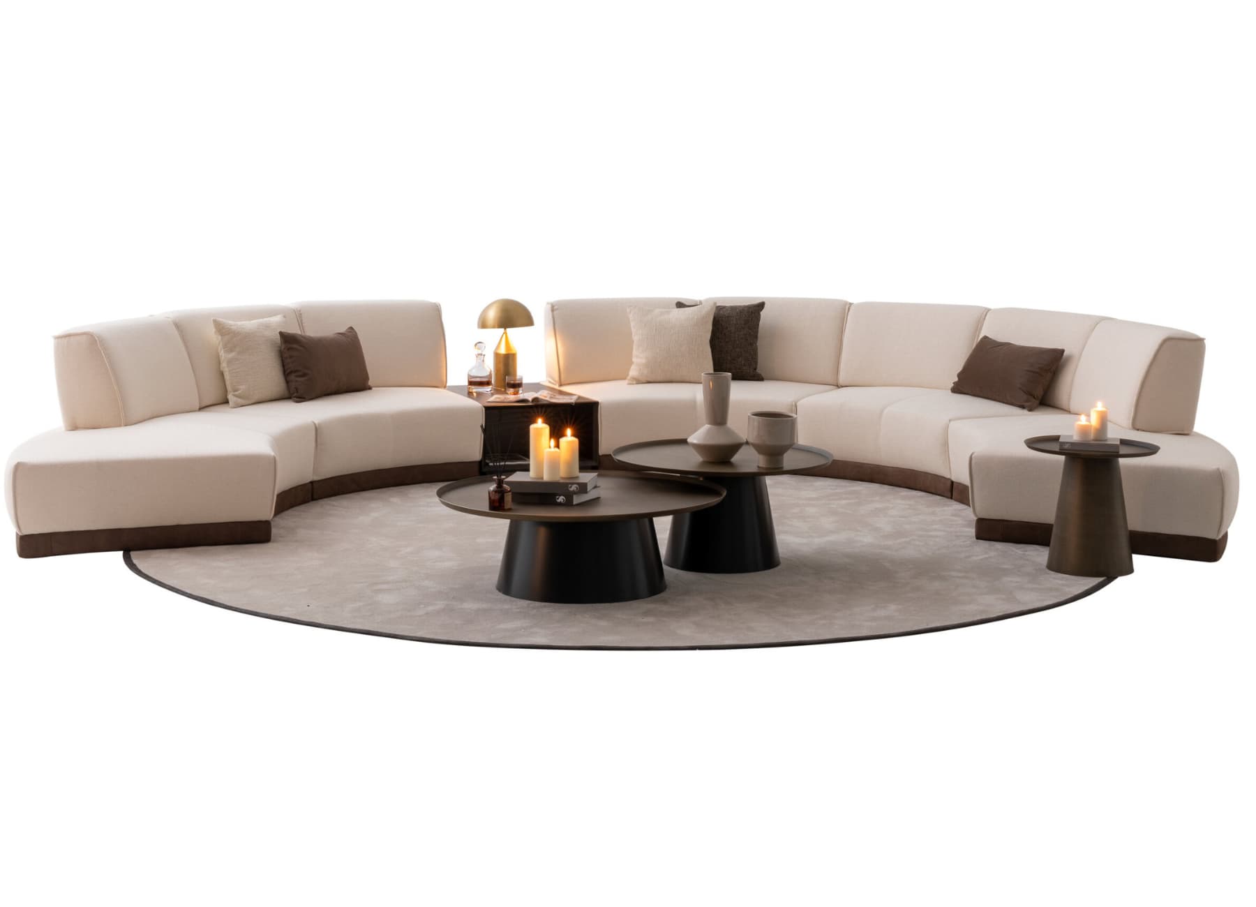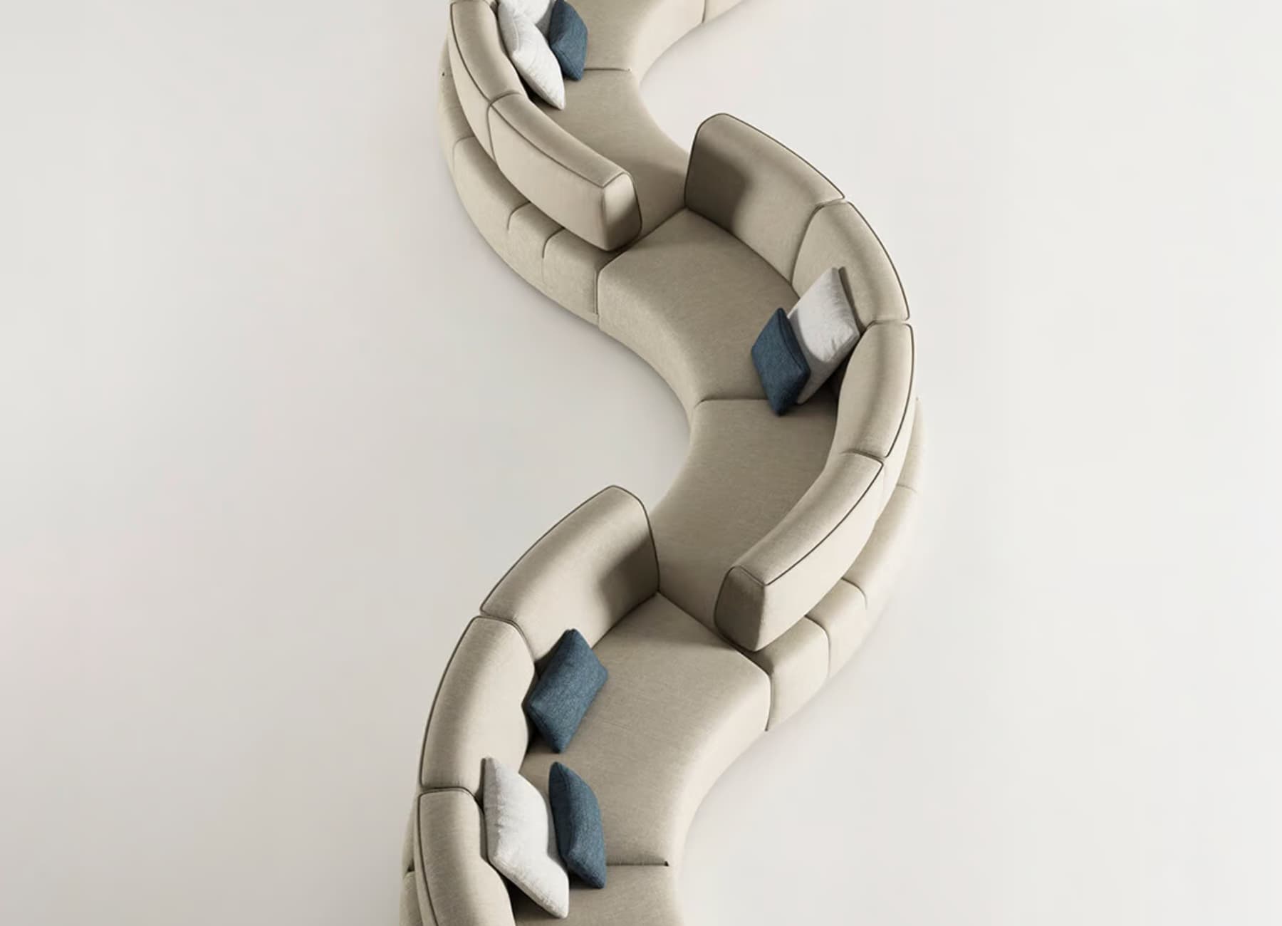 The Le Mans Sofa redefines luxury seating with its bold, sweeping curves and modular layout. Upholstered in a textured cream fabric with a plush yet structured silhouette, this sectional creates an inviting and spacious lounge experience. Its distinctive crescent shape enhances the flow of any room while maximizing seating space—ideal for modern homes, lounges, or open-concept living areas.