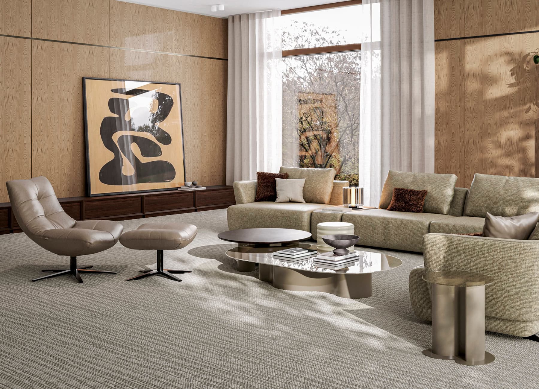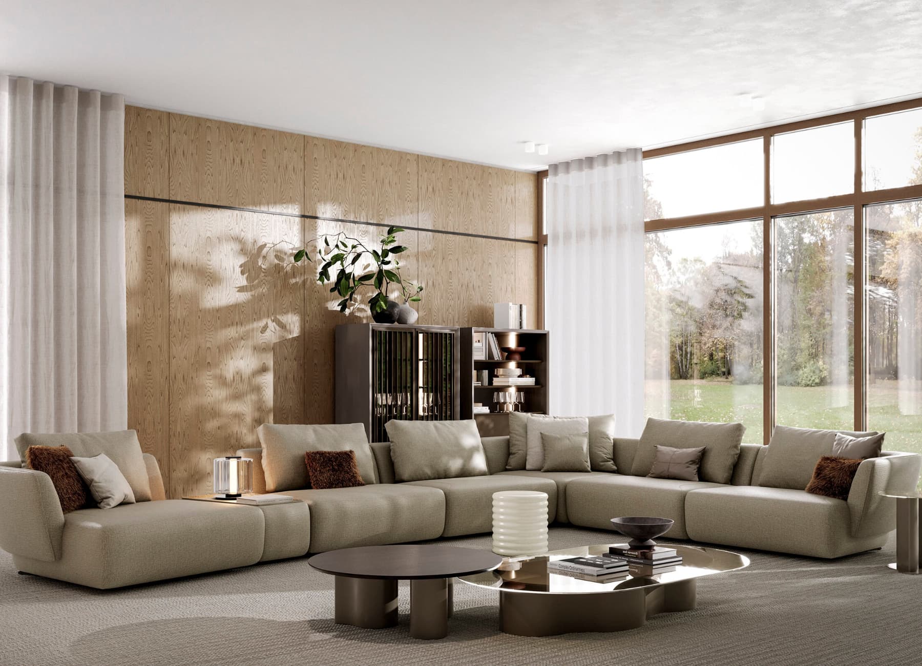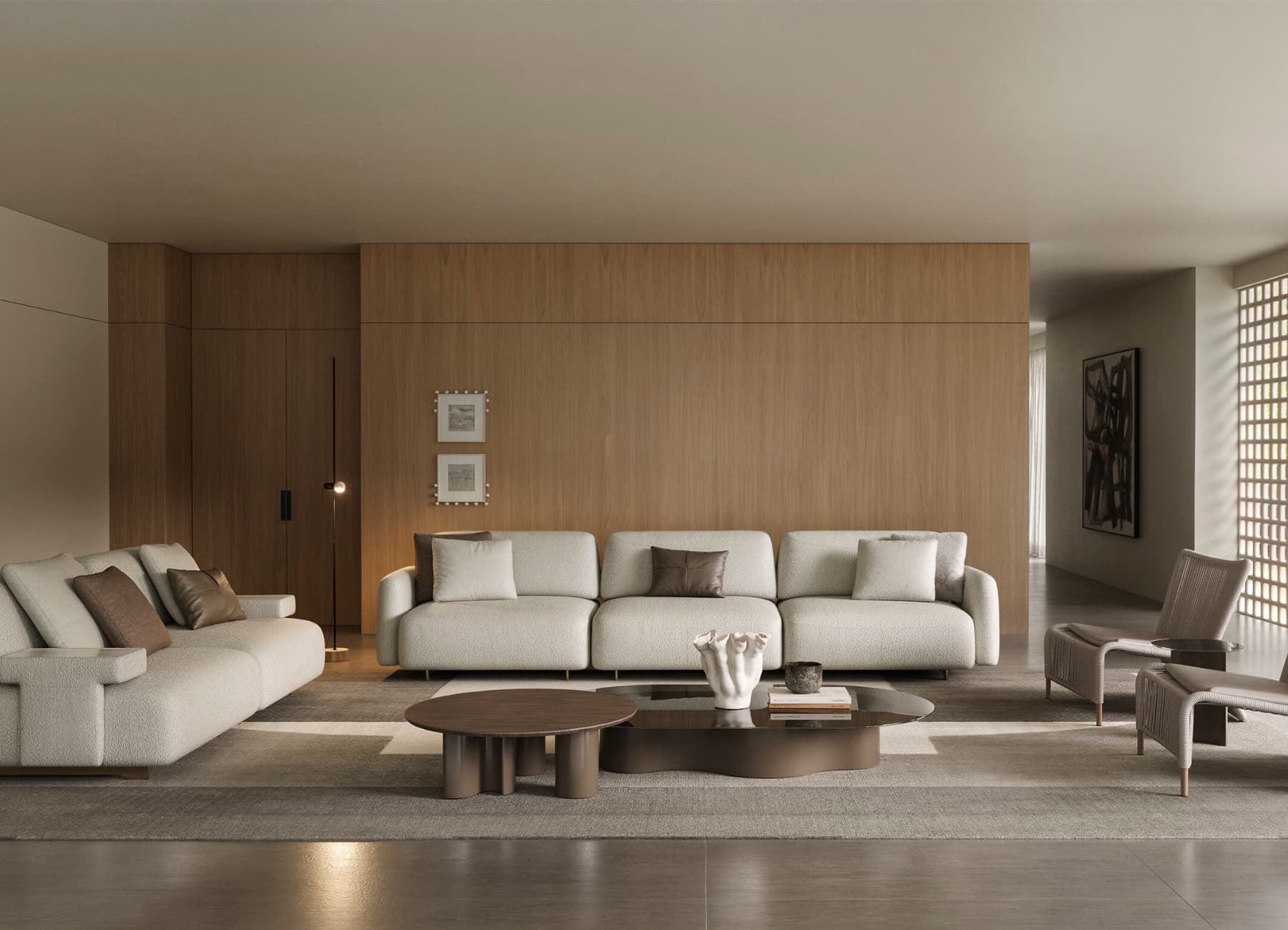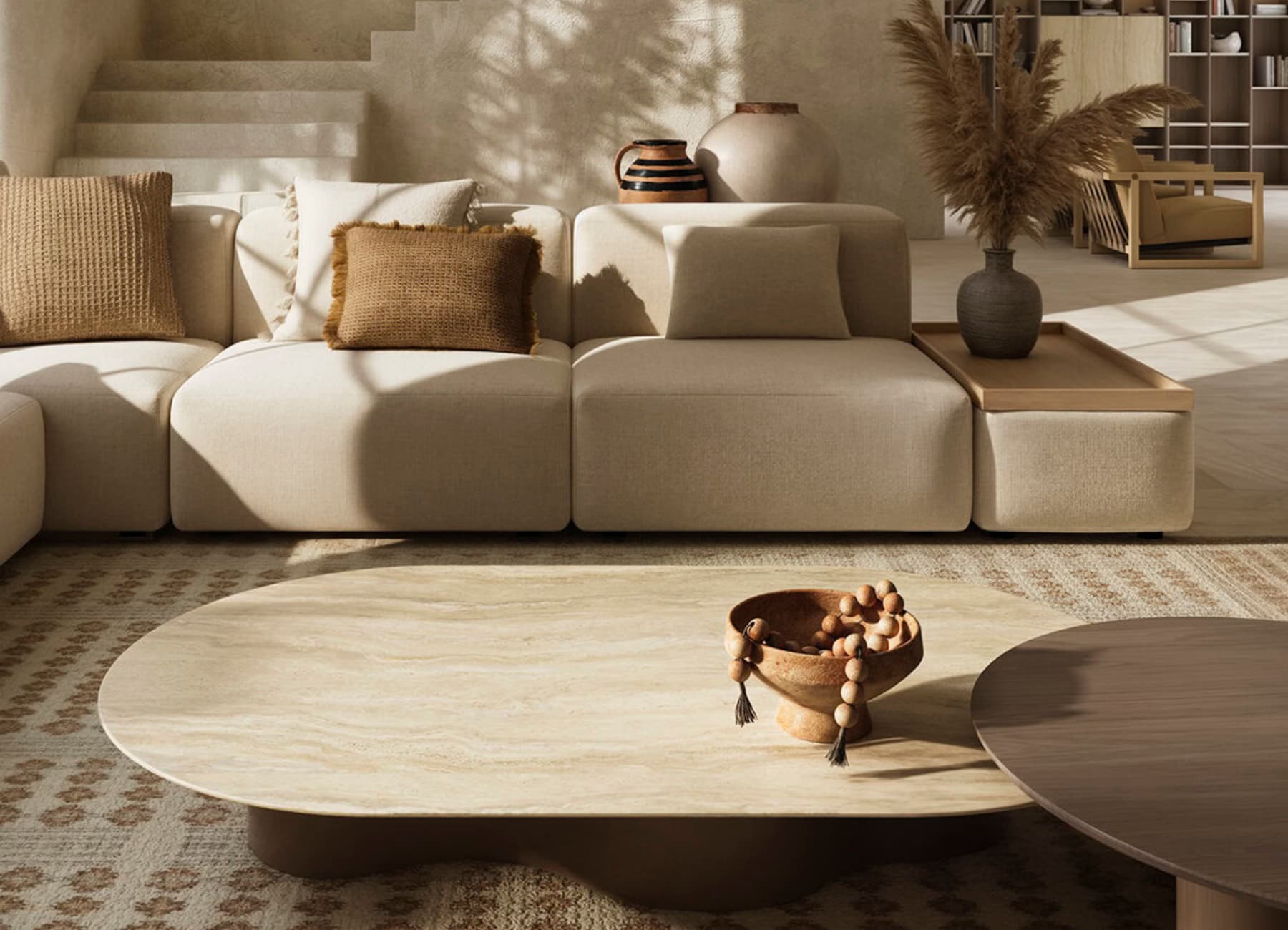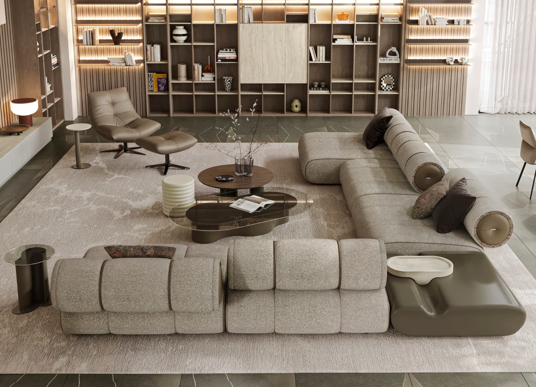 Design Note: The contrast between round, rectangular, and sculptural elements makes the Pera set ideal for modern, high-end interiors seeking a bold yet refined look.