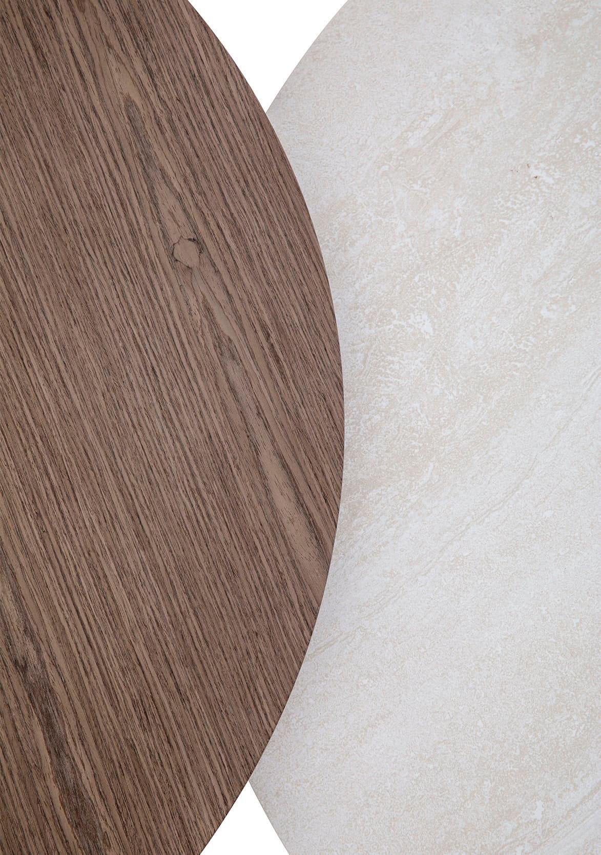 Round coffee table with wood top for warmth and texture