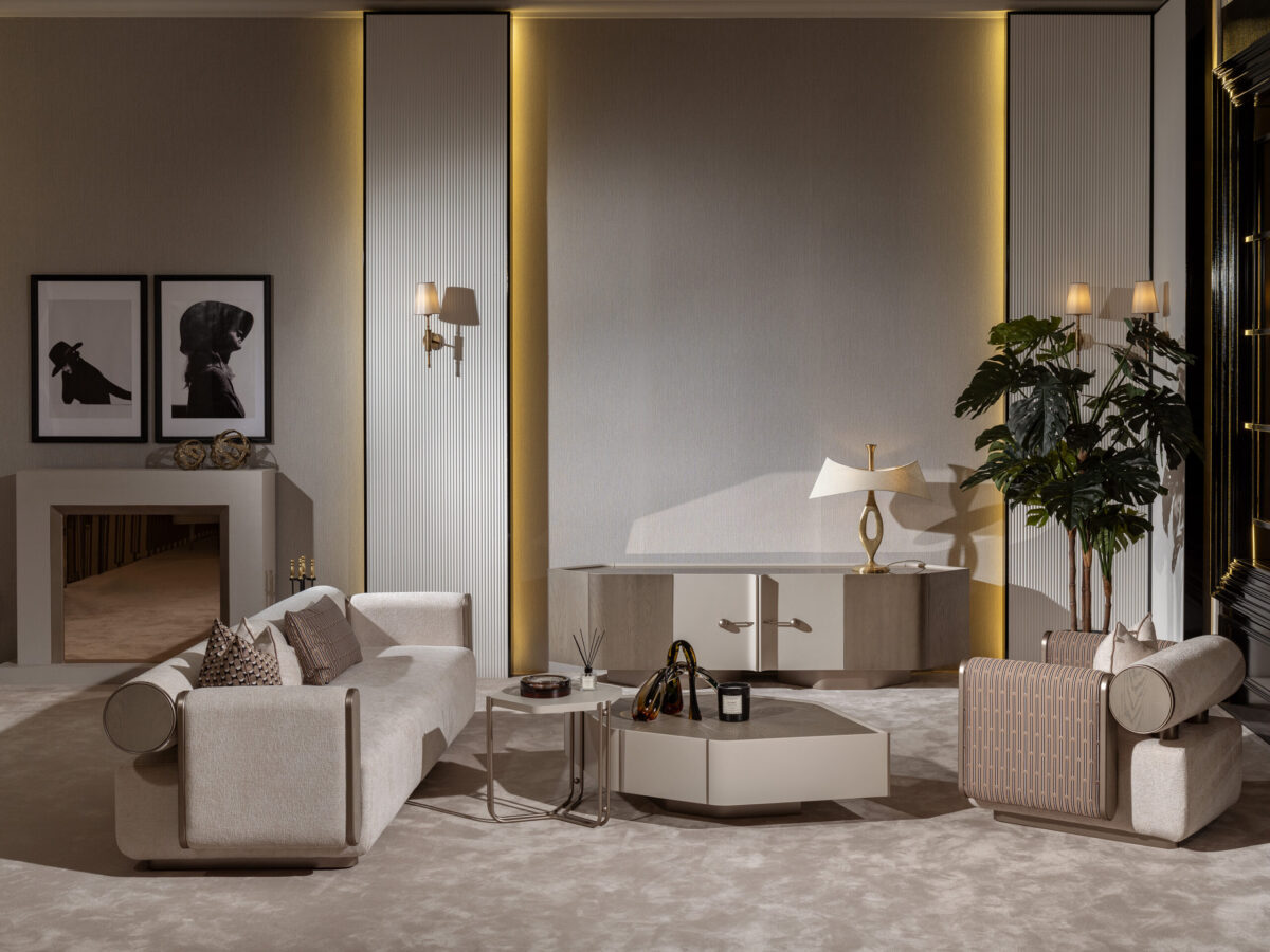 Built from premium materials, the Ricamo TV stand features a minimalist design that doesn’t compromise on functionality. Its push-to-open doors with elegant spherical handles provide discreet yet ample storage for media essentials, ensuring your entertainment space stays organized and clutter-free. The low-profile metallic base adds stability while enhancing the unit’s contemporary character.